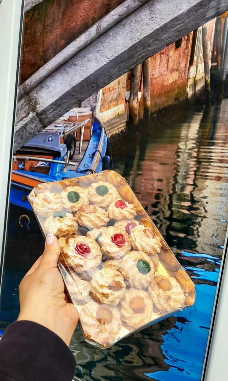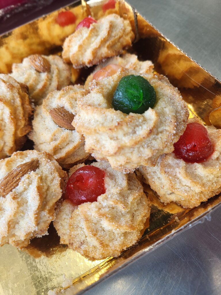Sudėtis: Cukrus, gliukozės-fruktozės sirupas, krakmolas, riešutai (migdolai), augaliniai riebalai, dažikliai (E127, E133), konservantai, kvapiosios medžiagos. Gali būti: glitimo, pieno, sezamo, žemės riešutų pėdsakų.